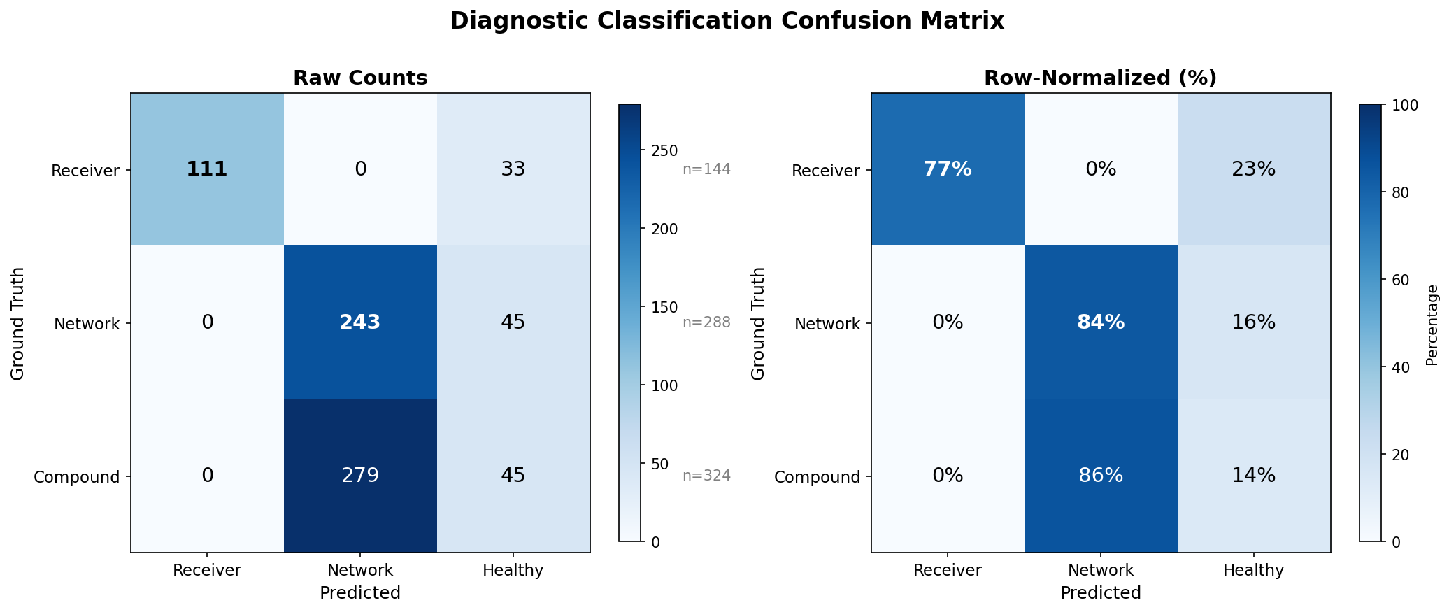 - Masking effect warning: When network problems are detected, explicitly note that receiver status is unknown and re-testing is needed